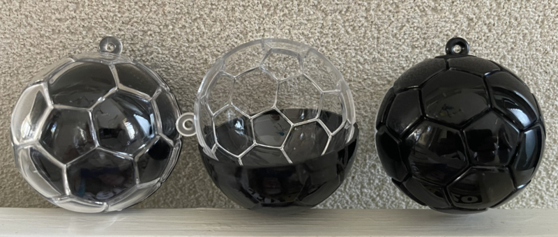 VOETBAL 5 CM DOORSNEDE GEVULD MET SNOEP EN KAARTJEVOETBAL ONGEVEER 5 CM DOORSNEDE GEVULD MET SNOEP LINTJE EN KAARTJE