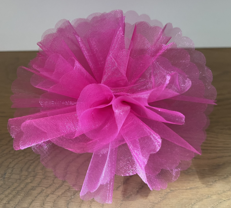FUCHSIA SATIJNEN TULE'S MET SNOEPJES EN KAARTJE